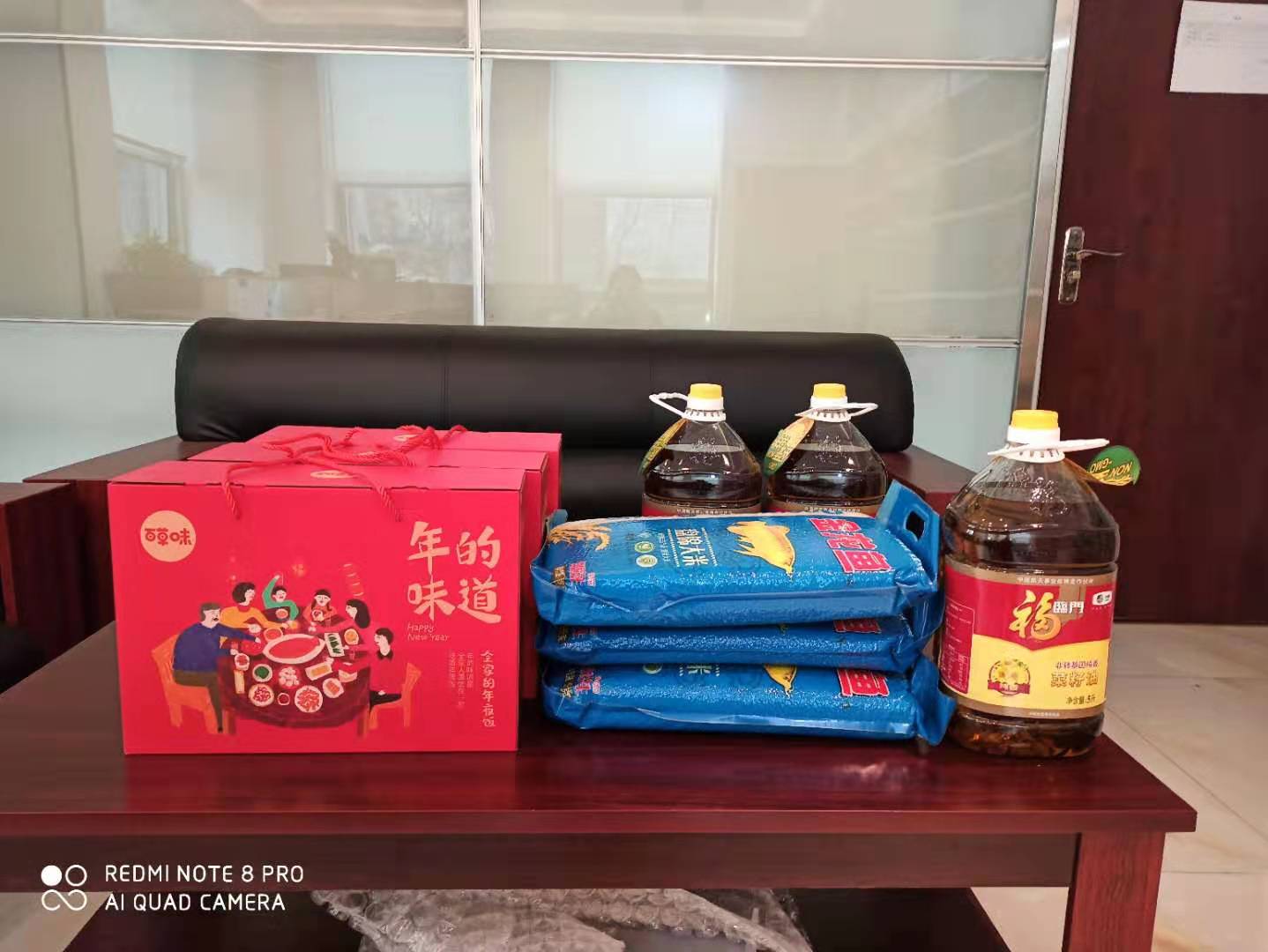 為提高公司凝聚力、向心力,讓員工把公司當家,創造性地完成工作。因此公司組織多樣化的企業文化活動,提高節假日福利待遇,使員工感到溫暖與關愛、重視與欣賞,從而讓員工想要留在溫暖與奮進的企業中。2020年大硅公司領導為公司每位員工精心準備了新年禮物。送的福利有一袋米,一桶油,和一箱堅果大禮包。